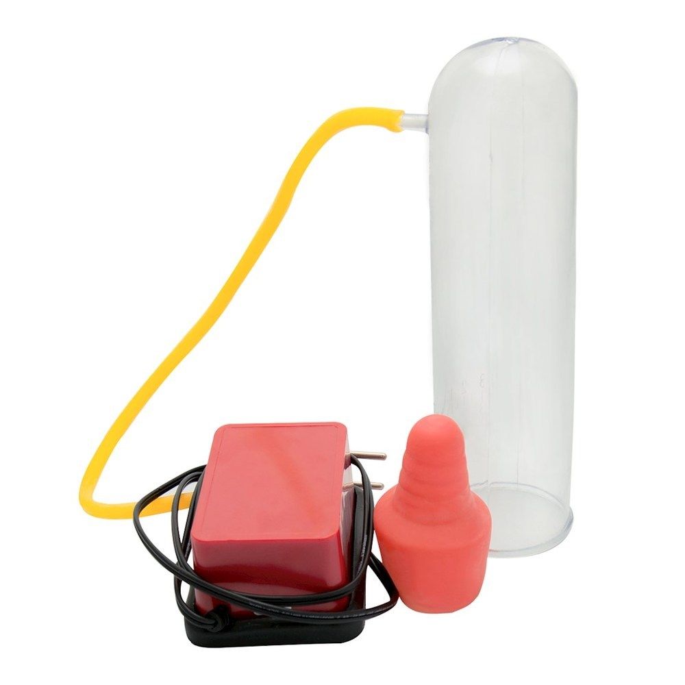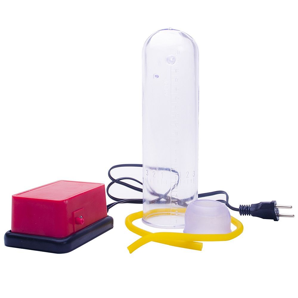 Modo de usar: Aplique o lubrificante no pênis ereto e ao redor do bocal de silicone. Coloque o pênis ereto dentro do tubo de acrílico. Pressione com o dedo o orifício localizado em cima da cápsula até obter vedação. Engate a mangueira que esta ligada ao motor ao orifício do tubo, ligue o aparelho na tomada e comece a sentir a pressão. O aparelho estimula a circulação sanguínea proporcionando o aumento gradual do pênis.