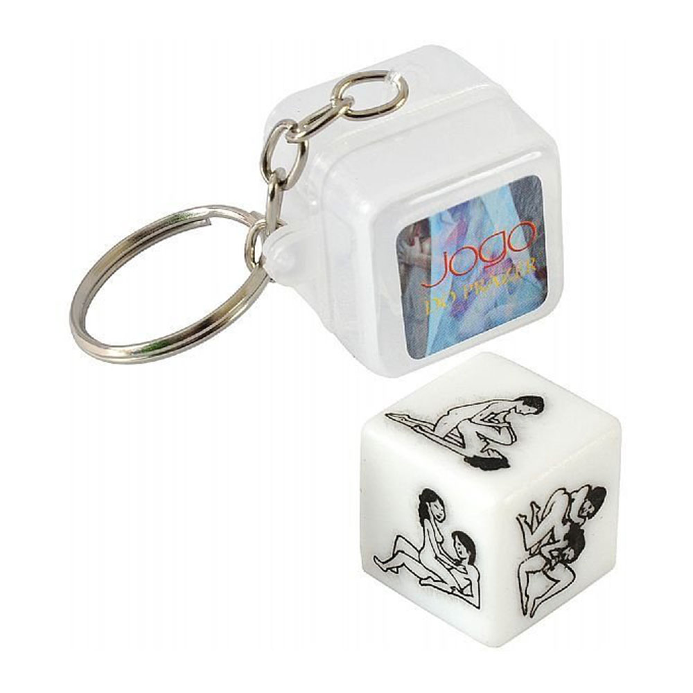 Conteúdo da Embalagem: Chaveiro com corrente e argola acoplado a uma caixa plástica contendo 01 dado.