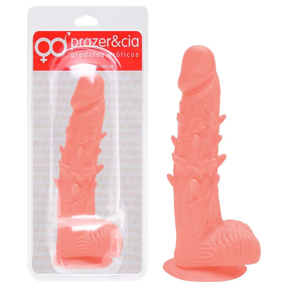 Pênis de Borracha Maciça 19,5 x 4,2cm com textura. Desfrute de uma experiência autêntica com o Pênis de Borracha Maciça da Prazer E Cia.